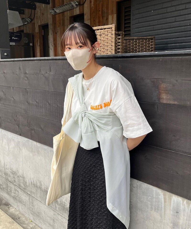 把衬衫斜绑在身上,做一些小变化,则是时下日妞们超流行的搭配方法,让整体造型更有亮点,一秒化身为涩谷街头的都会女子!